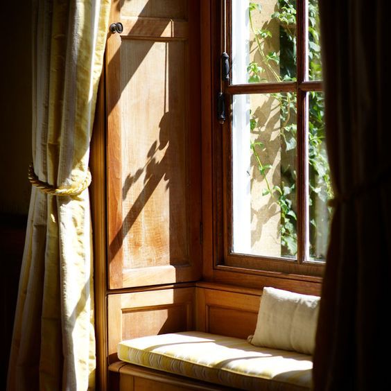 • it’s clear and cheery out, sun filtering in through the blinds over red tiles